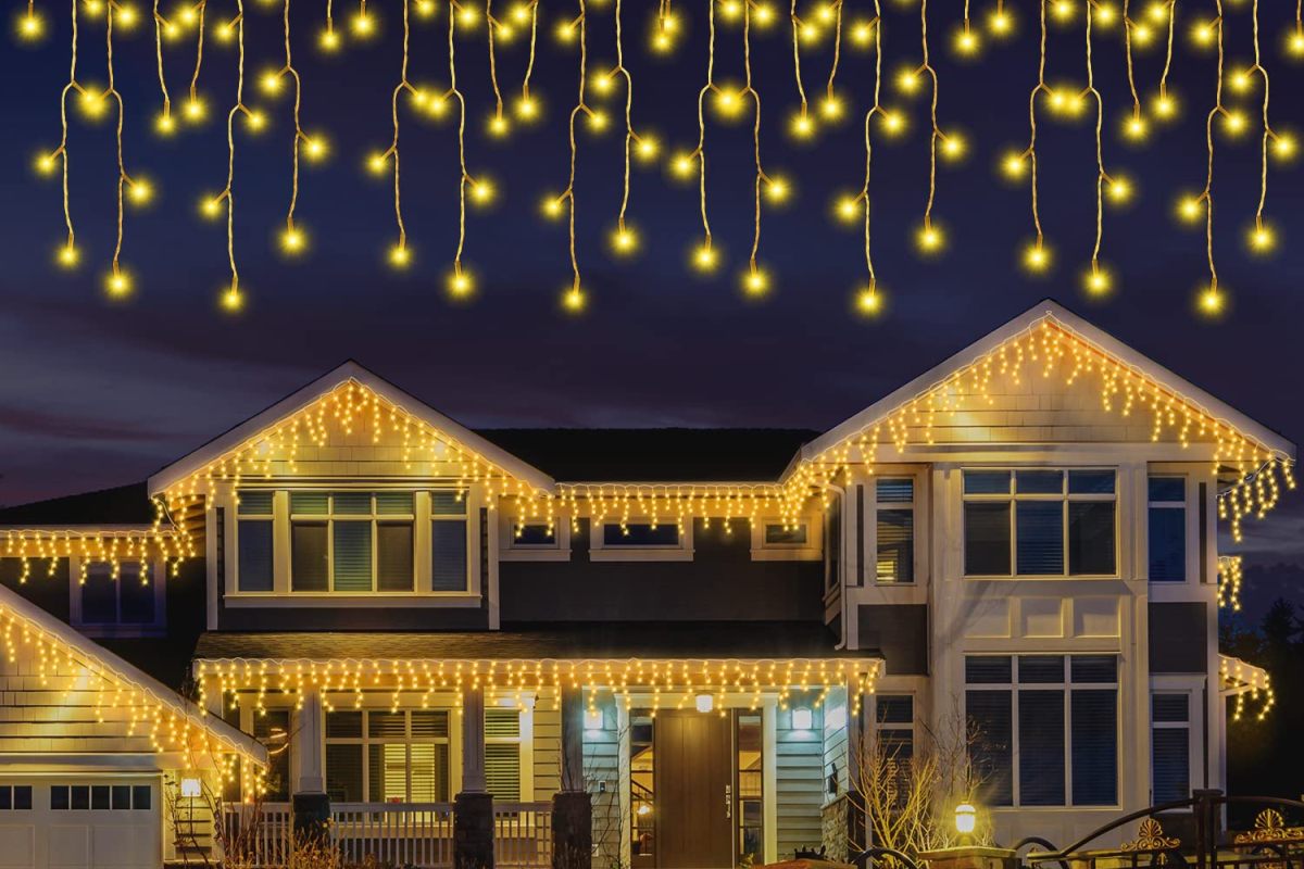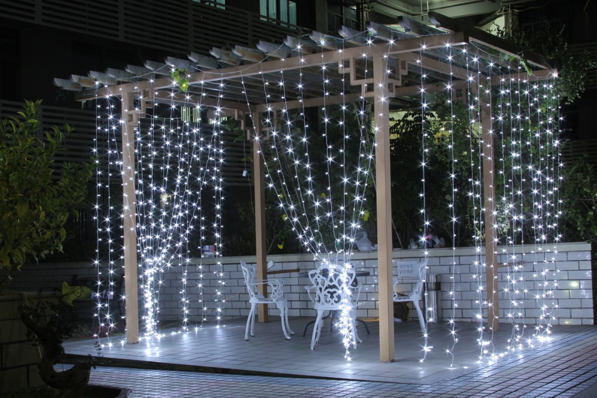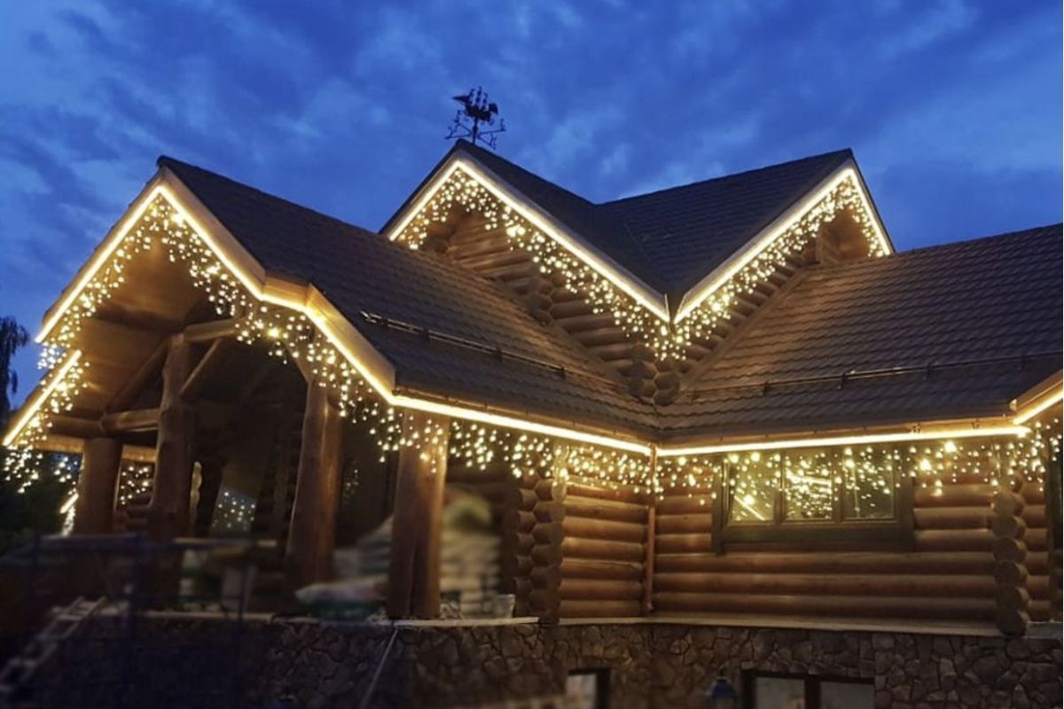 Гирлянда используется в экстерьере при оформлении карнизов крыш, козырьков, подоконников. Она интересно смотрится как украшение на небольших элементах, например, перилах лестницы, террасе или беседке. Светодиодная гирлянда имеет прочный резиновый провод.
