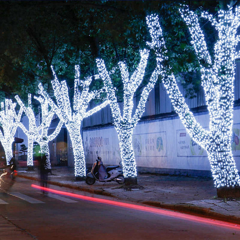 Обычно используется при оформлении к праздникам и световом декоре зданий и территорий применяется активно, и пользуется большим спросом. Светодиодная нить позволяет быстро и красиво украсить фасады зданий, архитектурных сооружений, деревья, а также помещения. Световые нити также позволяют создать роскошные композиции из света, которые могут быть в сочетании с другими типами светодиодных гирлянд.