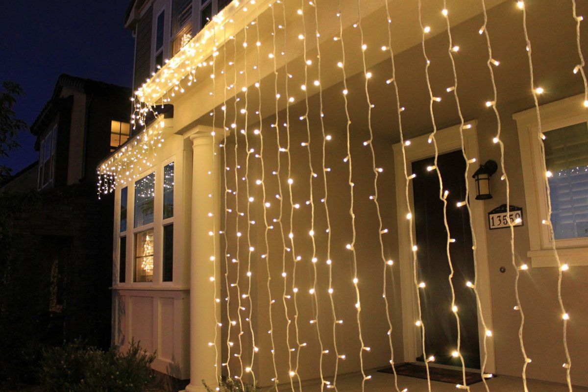 Отлично подходит для уличного оформления, и с его помощью можно придать эффектный праздничный вид самым разным объектам. Гирлянда Световой дождь представляет собой световой занавес из светодиодов, которые размещаются на различном количестве вертикальных нитей, имеющих определенную длину. Все они крепятся к одной горизонтальной шине при помощи соединительной муфты. Светодиоды размещены на определенном расстоянии друг от друга по всей протяженности свисающей вниз нити. Световые занавесы также могут иметь другие названия: светодиодный дождь, гирлянда Плей лайт, светящаяся штора и т.д.